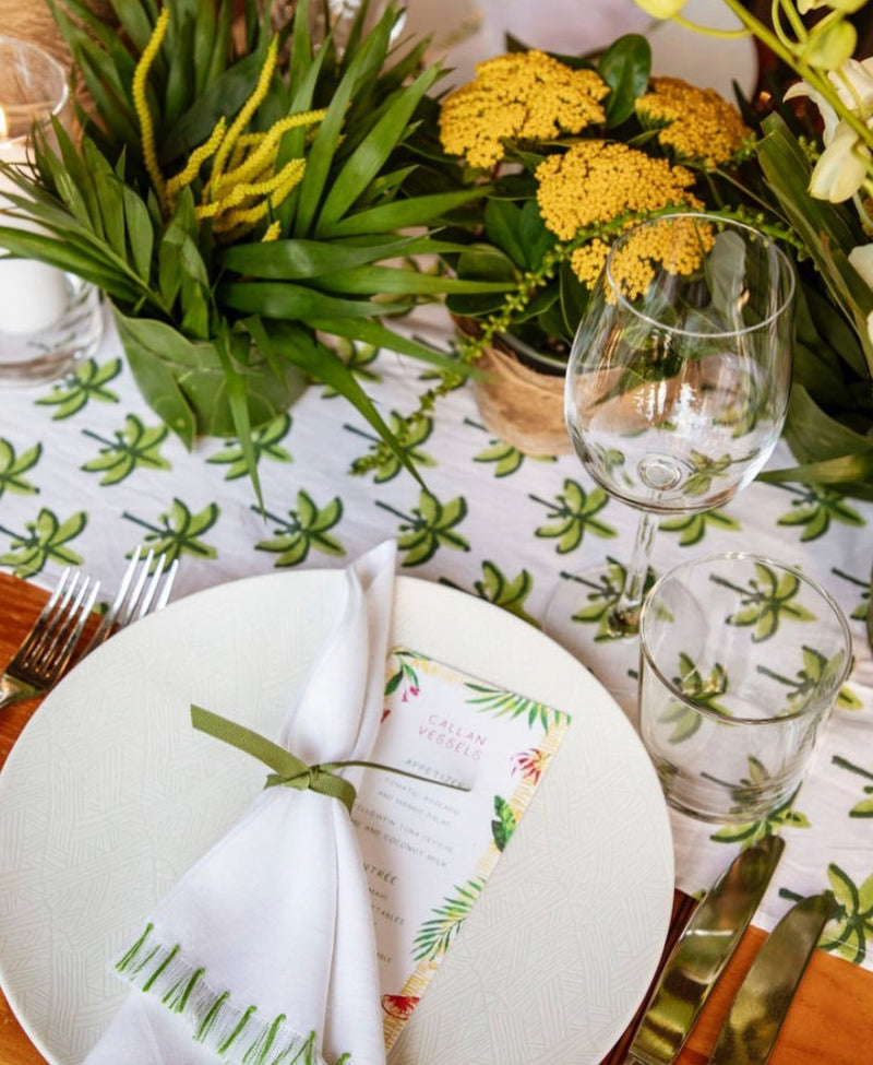 For custom wedding and special orders, Indigo by Boutin has the ability to create a design from scratch, where we have our manufacturers and team make a custom block for you which then can be printed in any color way of your choice. We are also able to keep it more simple, and use any of our current swatches or prints that are available to view on the site.